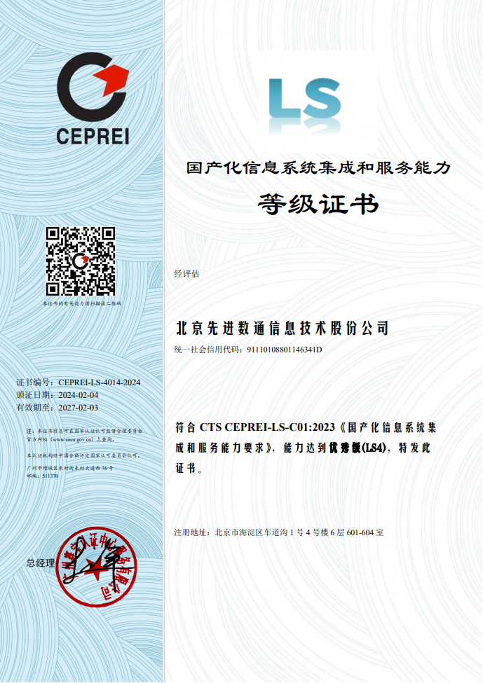 国产化信息系统集成和服务具有关乎国家科技开展和社会信息安全的特殊性,在行业准入方面具有特殊要求。截至现在,国产化信息系统集成和服务能力共划分为四个等级,从低到高依次为LS1级(初始级)、LS2级(基本级)、LS3级(良好级)、LS4级(优秀级)。认证过程经过严格的审核和评估,对企业综合能力、设计研发能力、集成能力、技术支持能力、管理能力等多项指标进行科学有效的考核评价。本次认证的顺利获得,不仅体现了业界对G22恒峰集团研发能力、创新能力、企业管理能力等多方面认可,更彰显了企业的综合实力及核心竞争力已得到进一步提升。