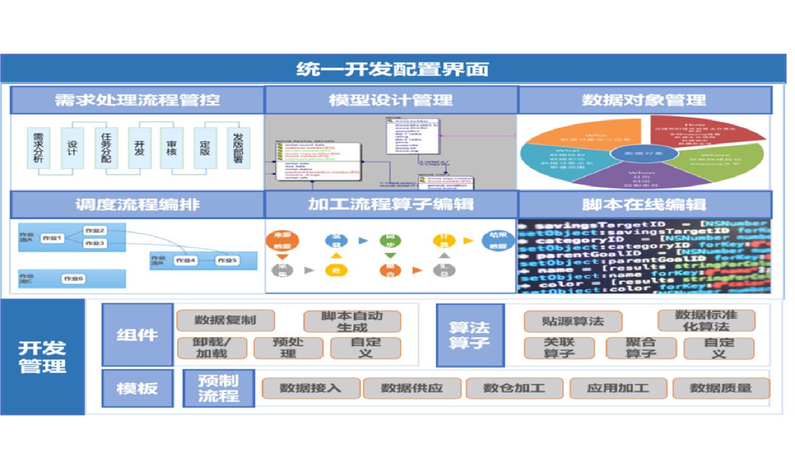 顺利获得参数化开发和给予脚本自动生成工具,从工具层面支撑数据开发,提高整体开发效率和质量